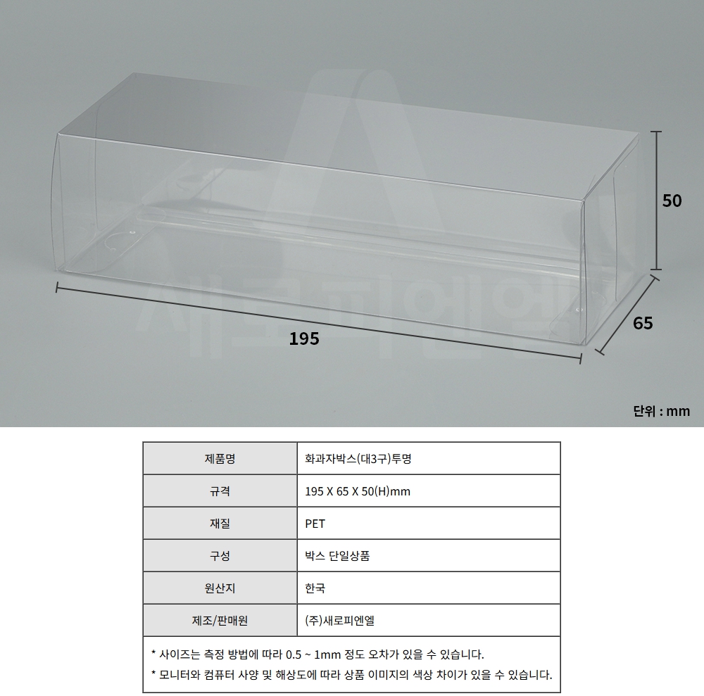 화과자박스(대3구)투명 / 195×65×50(H)mm, 25개 신상품