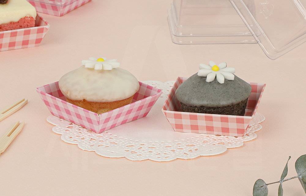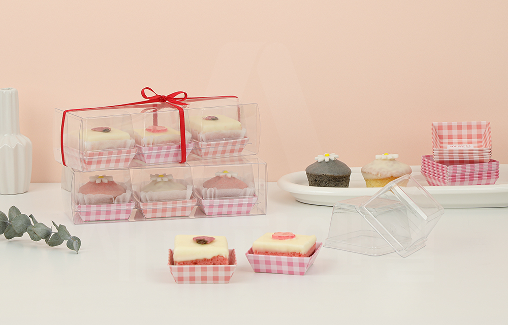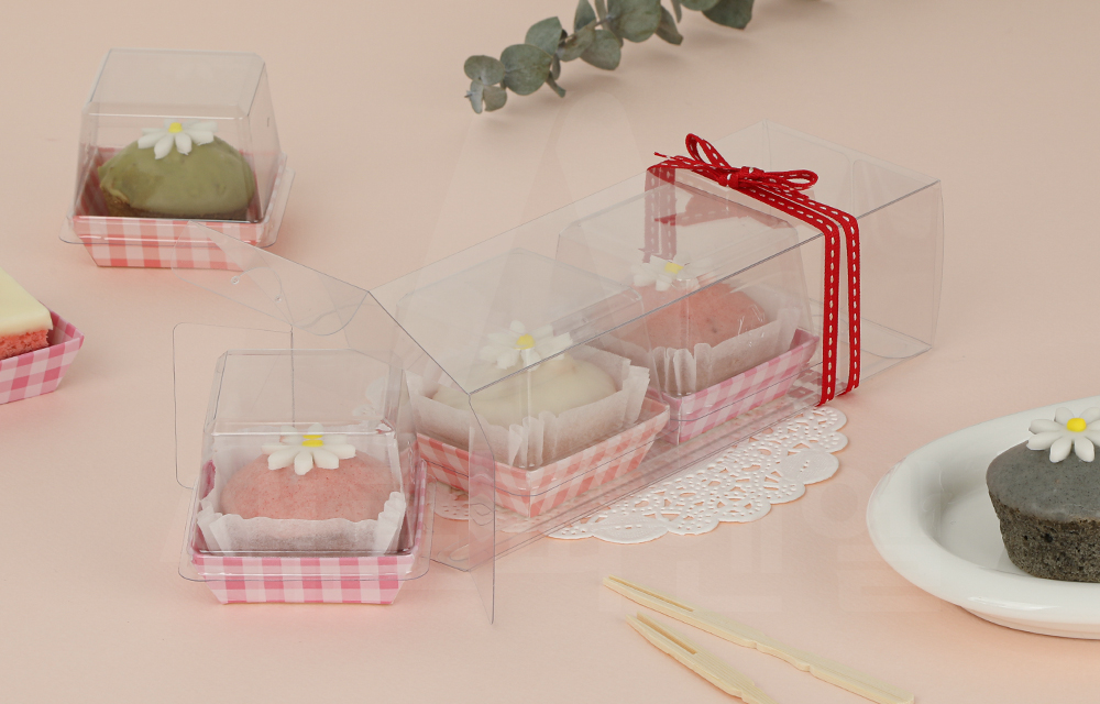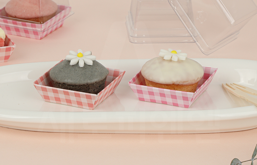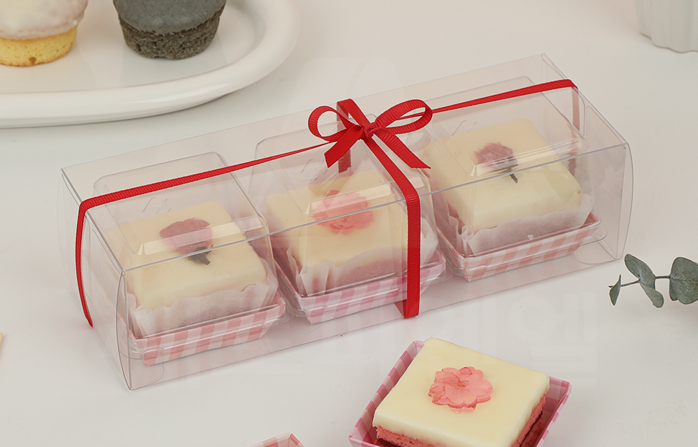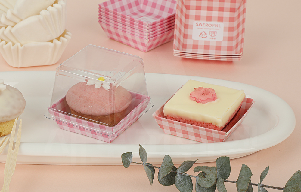 디저트를 정돈된 형태로 깔끔하게 연출할 수 있어 선물용 디저트 포장이나 매장 판매용 포장에 활용하기 좋습니다.
