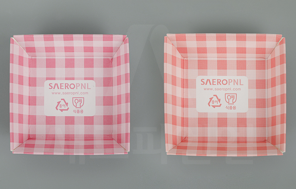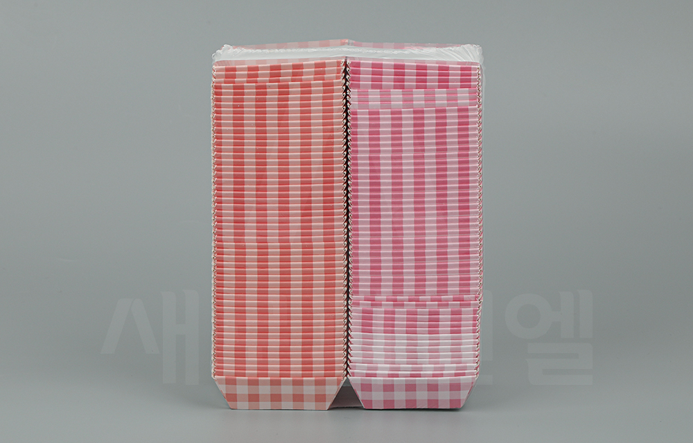 핑크와 인디핑크 두 가지 컬러의 체크 패턴 디자인으로 구성되어 있어 사랑스럽고 따뜻한 분위기의 디저트 포장을 연출할 수 있으며