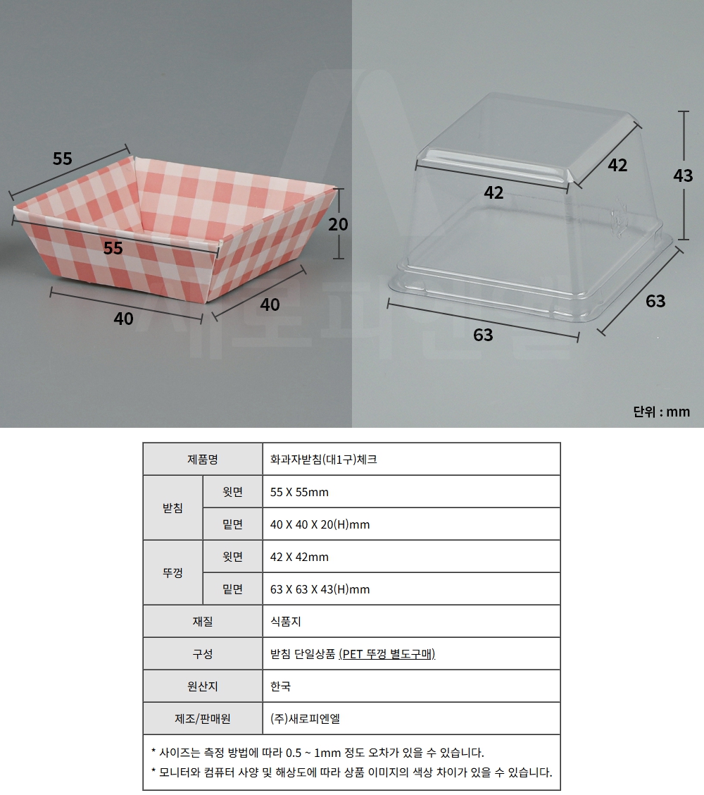 화과자받침(대1구)체크 / 40×40×20(H)mm, 100개 신상품