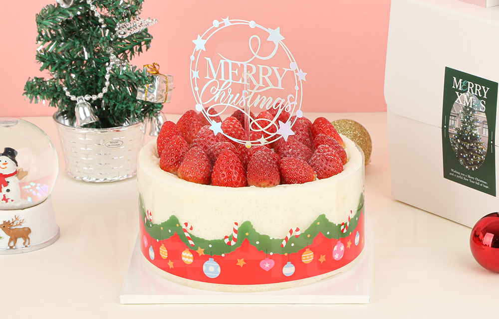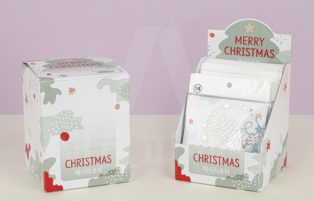 반짝이는 크리스마스 문구와 화려한 가랜드 디자인이 어우러진 크리스마스 토퍼입니다.