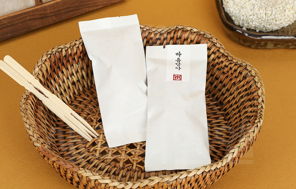 유과, 영양바 등 전통 과자류를 담기에 적합한 한지 봉투로 고급스럽고 정갈한 분위기를 연출할 수 있는 전통 감성 포장 용품이며