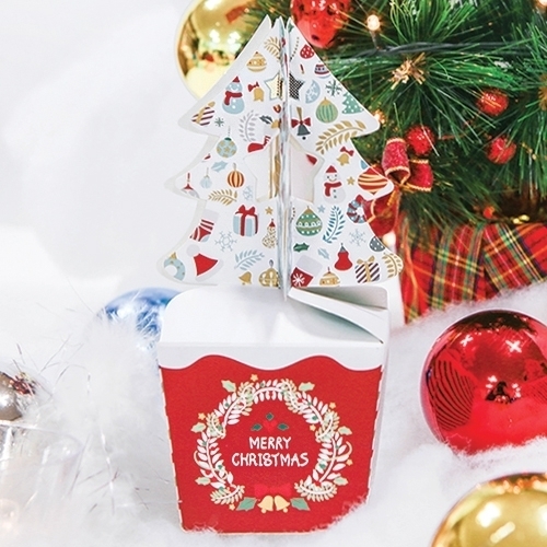 접으면 예쁜 크리스마스 트리모양이 입체로 완성되는 선물박스입니다.