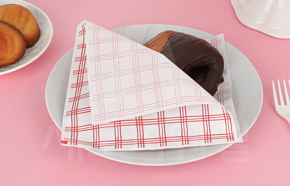 식품용 백노루지를 사용해 위생적인 포장이 가능하고, 내면에는 PE 코팅 처리가 되어 있어 유분과 수분의 흡수를 지연시켜 줍니다.