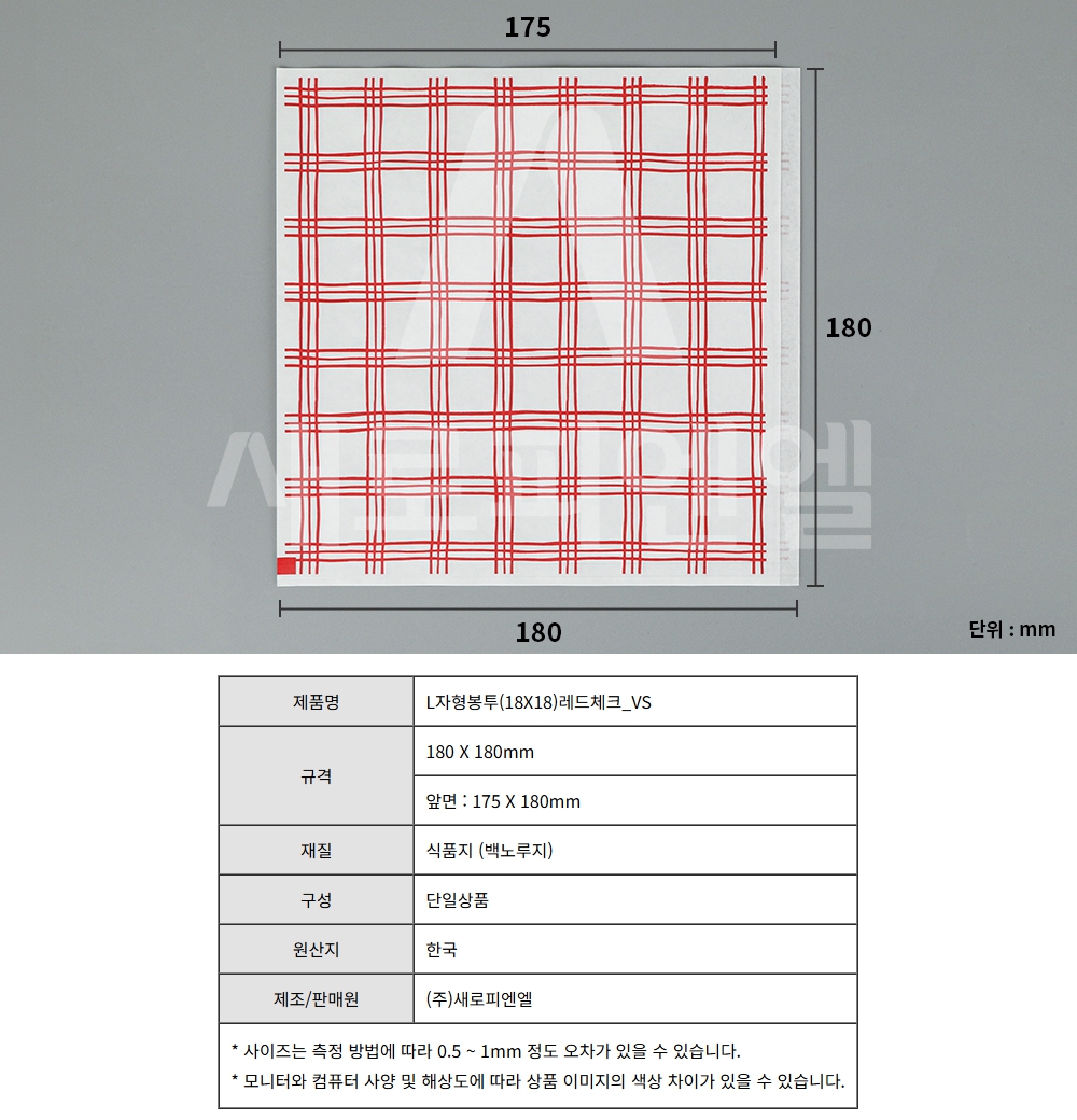 L자형봉투(18X18)레드체크_VS / 180×180mm, 500개 신상품