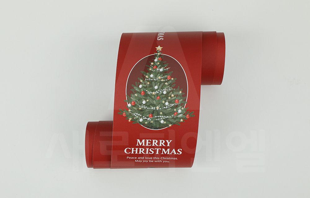 빨간 바탕에 트리와 크리스마스 문구가 어우러져 따뜻한 연말 분위기를 한층 더 살려줍니다.