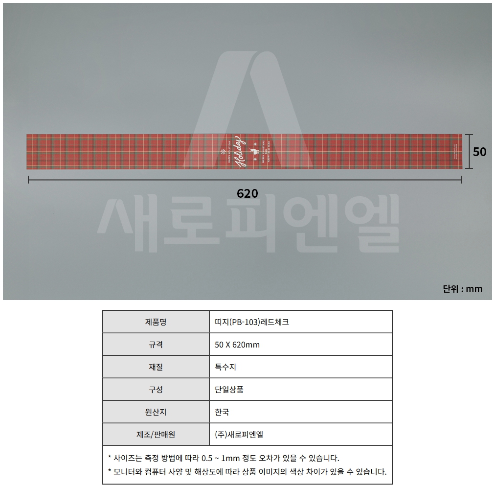 띠지(PB-103)레드체크 / 50×620mm, 25개 신상품