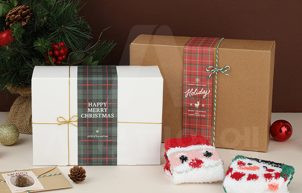 포장의 완성도를 높여주는 크리스마스 데코 띠지입니다.