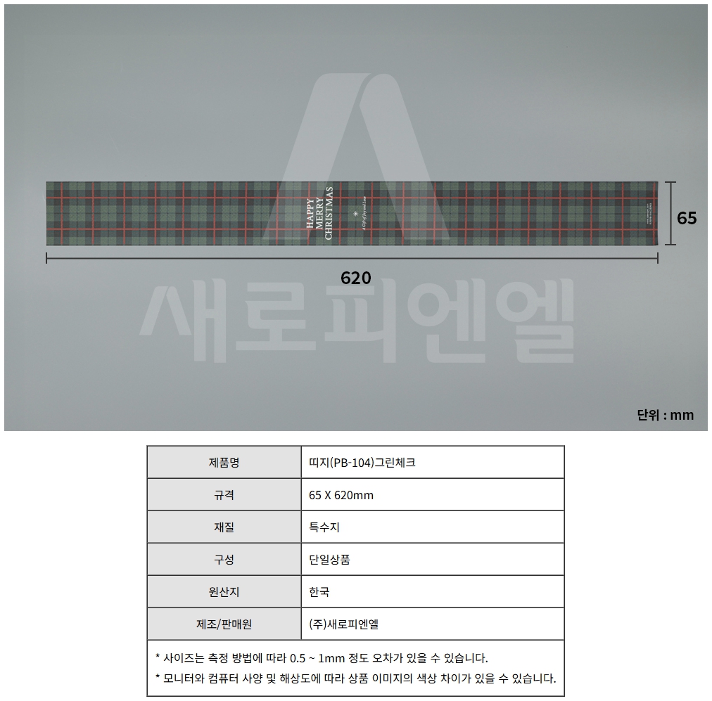띠지(PB-104)그린체크 / 65×620mm, 25개 신상품