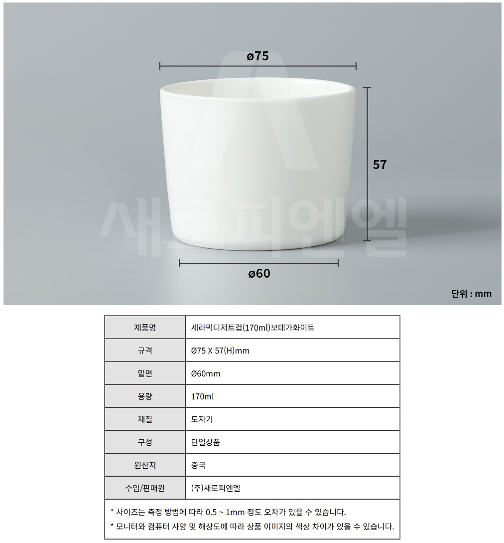 세라믹디저트컵(170ml)보데가화이트 / Ø75x57(H)mm, 1개 신상품