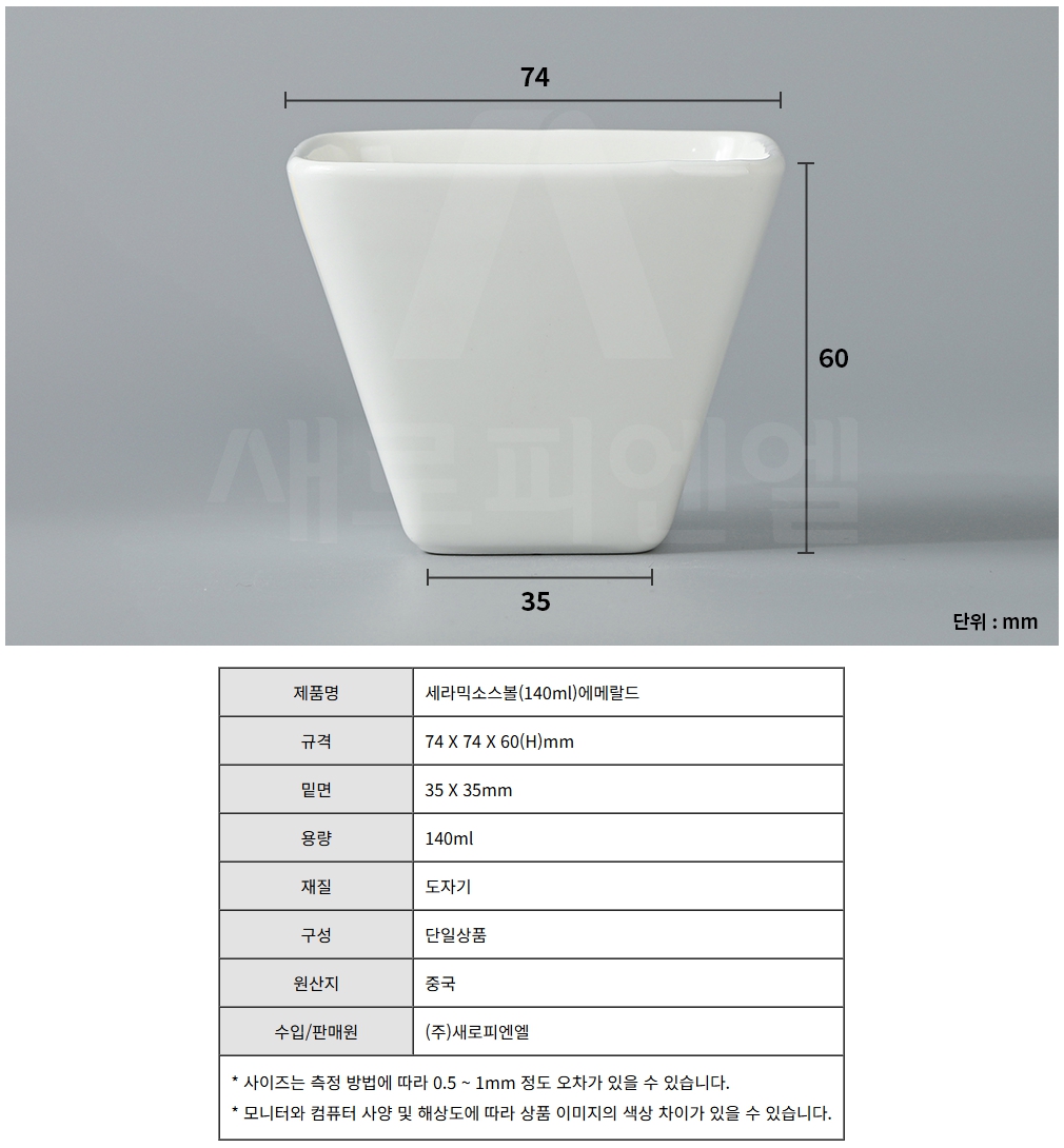 140ml의 여유 있는 용량과 안정적인 비율로 디저트부터 전채 요리까지 폭넓게 활용할 수 있는 세라믹 소스볼입니다.