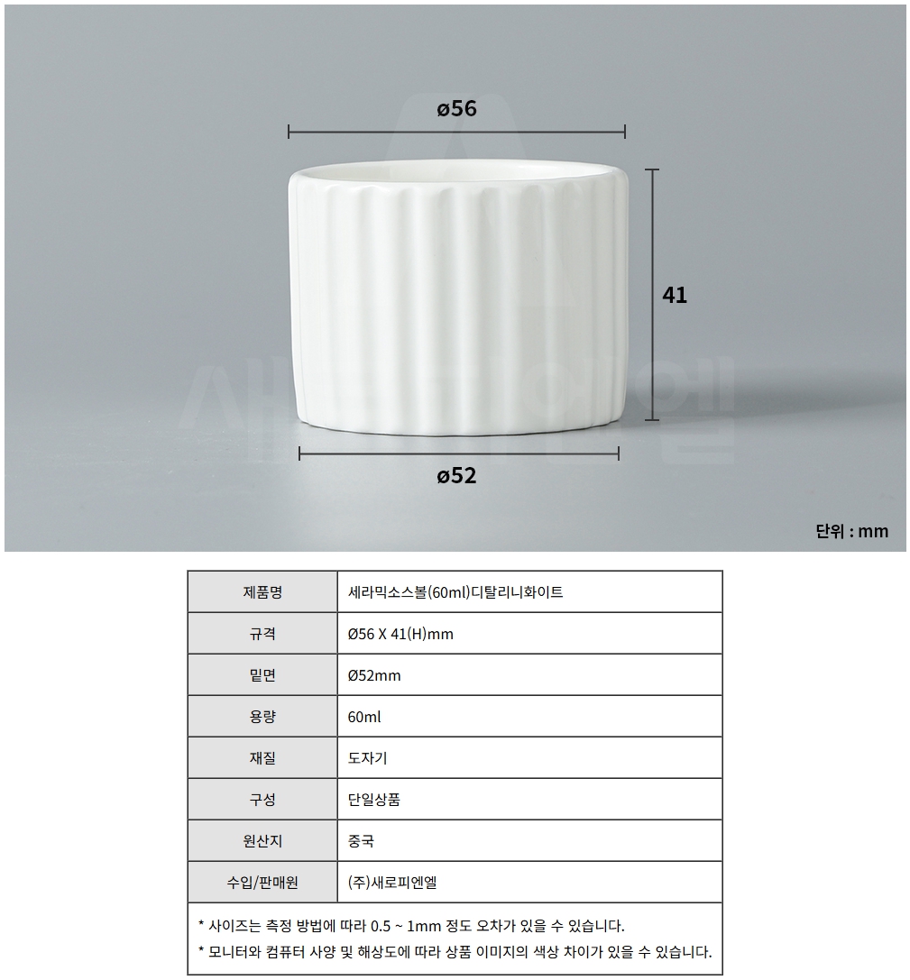 세라믹소스볼(60ml)디탈리니화이트 / Ø56x41(H)mm, 1개 신상품