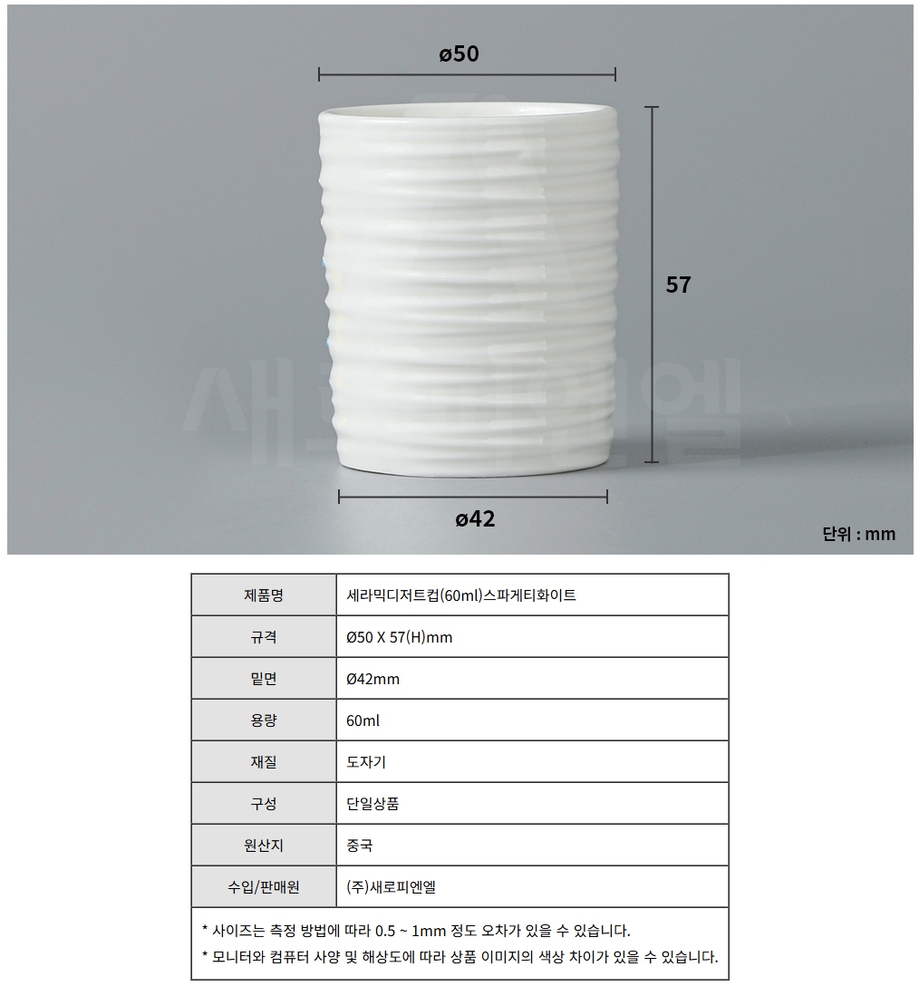 세라믹디저트컵(60ml)스파게티화이트 / Ø50x57(H)mm, 1개 신상품