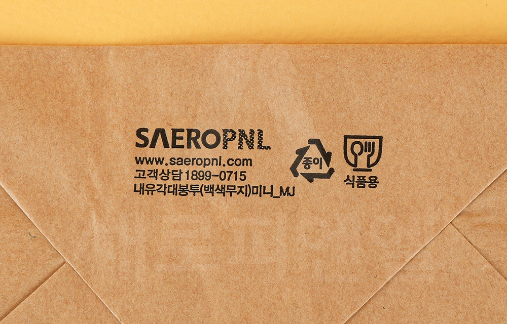 기존 각대봉투와는 다른 내유성 종이원단으로 제작하여 음식물의 기름 흡수를 지연시켜 줍니다.