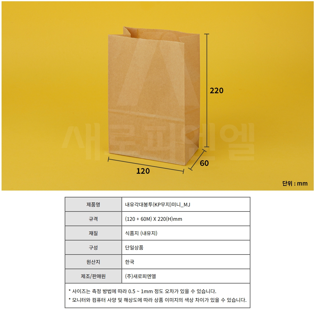 내유각대봉투(KP무지)미니_MJ / (120+60M)×220(H)mm, 100개 신상품