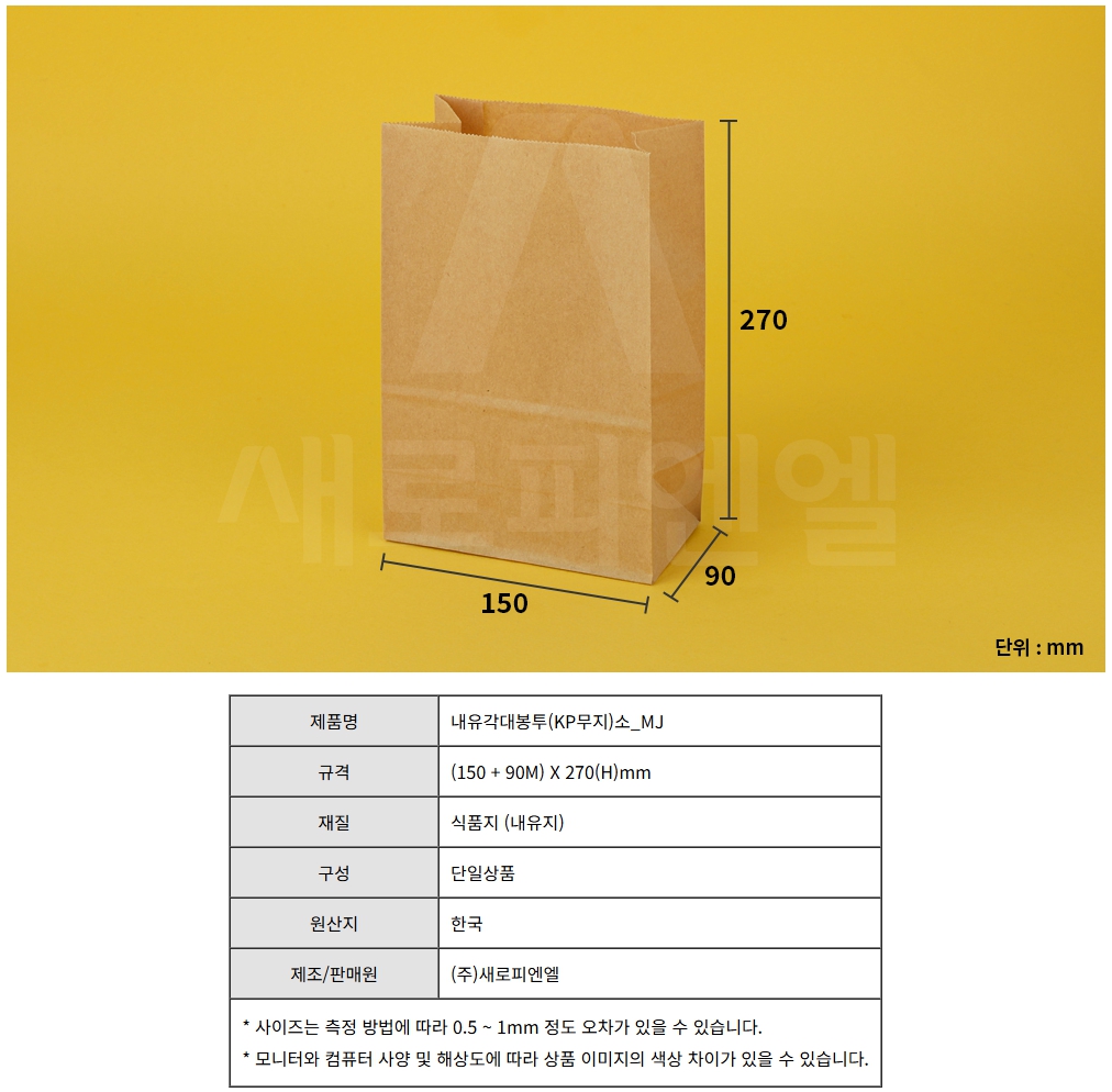 내유각대봉투(KP무지)소_MJ / (150+90M)×270(H)mm, 100개 신상품
