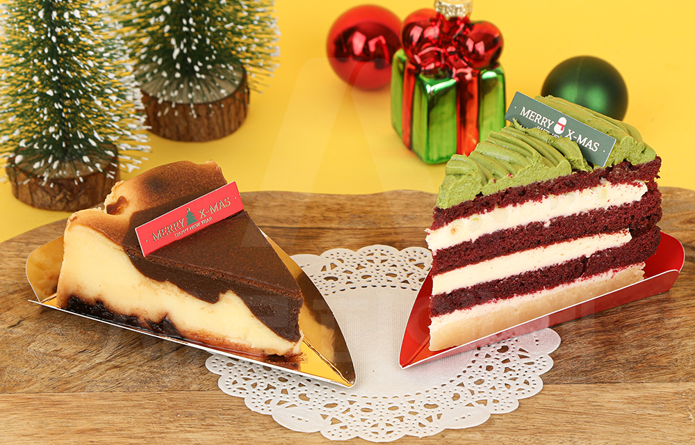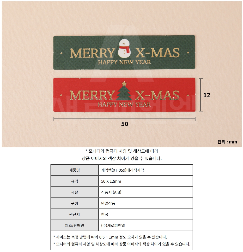 한 팩에 빨간색과 초록색 케익택이 절반씩 포장되어 있습니다.