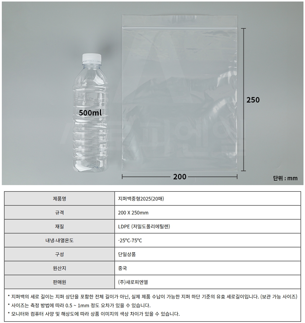 지퍼백중형2025(20매) / 200mmx250mm, 20개 신상품