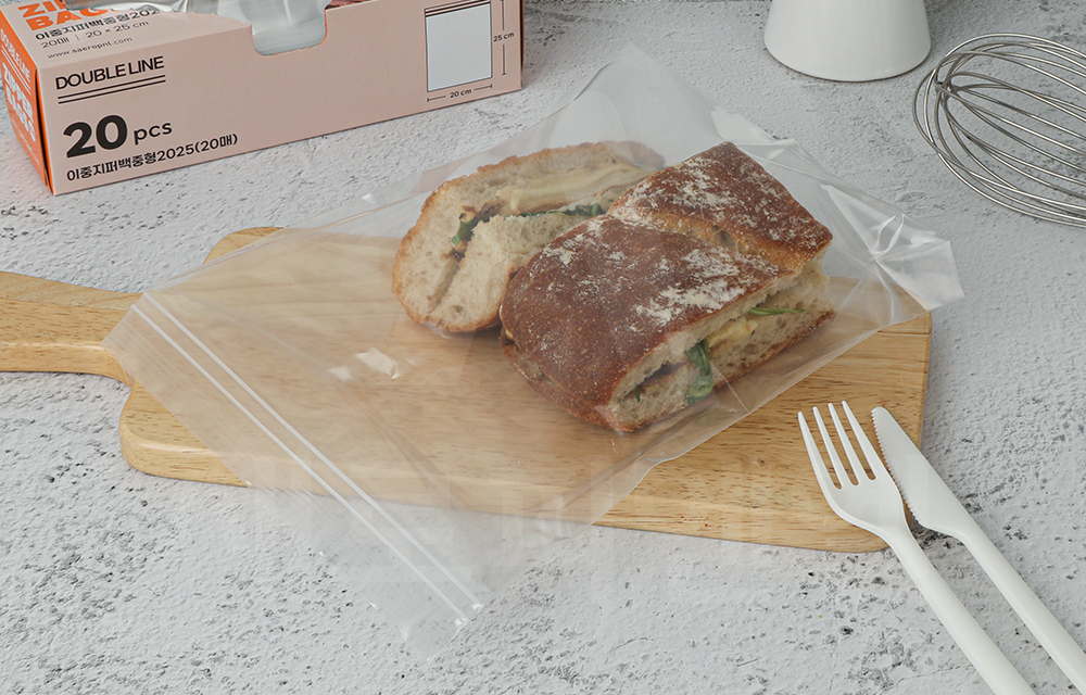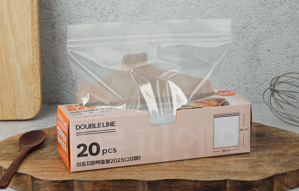 두 겹의 이중 지퍼 구조로 설계되어 더욱 탄탄하고 안정적인 밀봉이 가능한 투명 이중 지퍼백입니다.