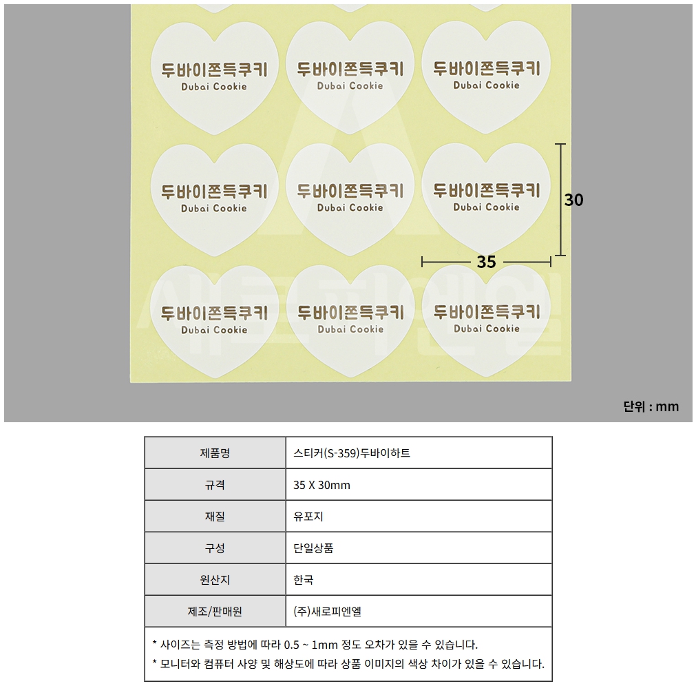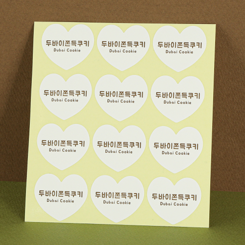 두바이쫀득쿠키 전용으로 제작된 하트 스티커입니다.