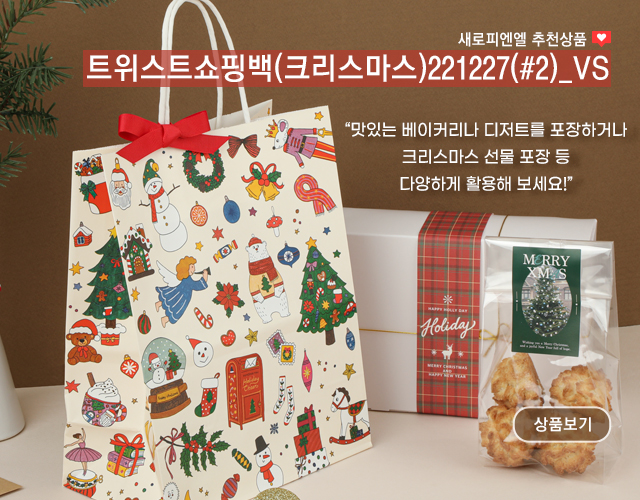 트위스트쇼핑백(크리스마스)221227(#2)_VS / (220+120M)×270(H)mm, 5개