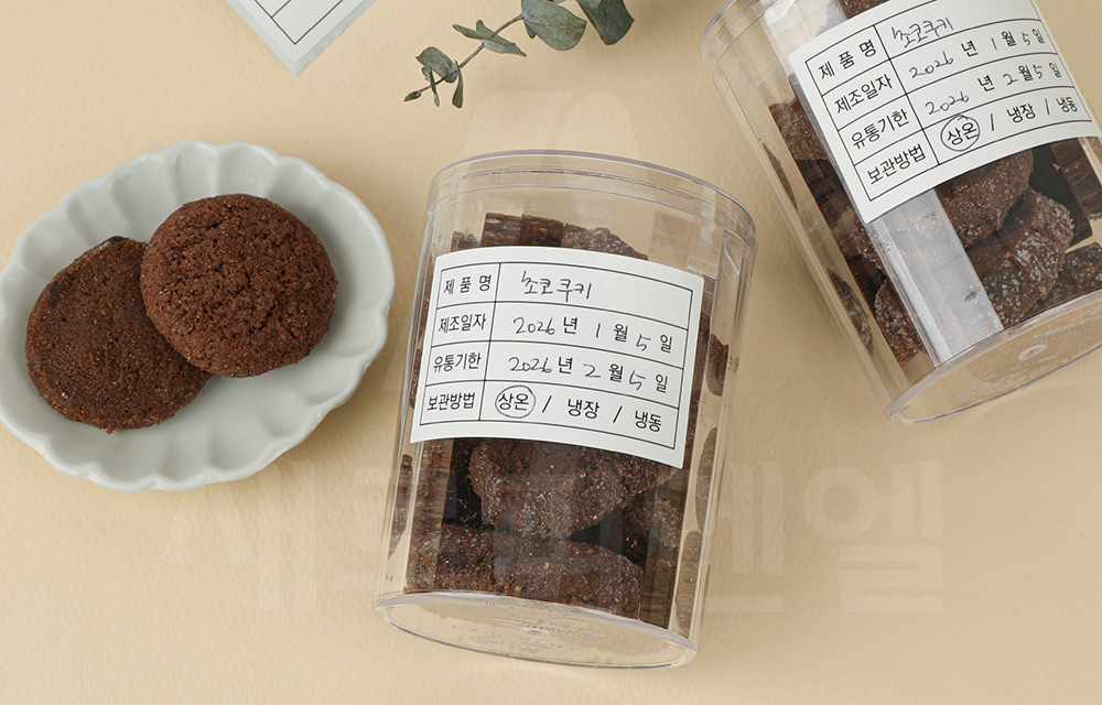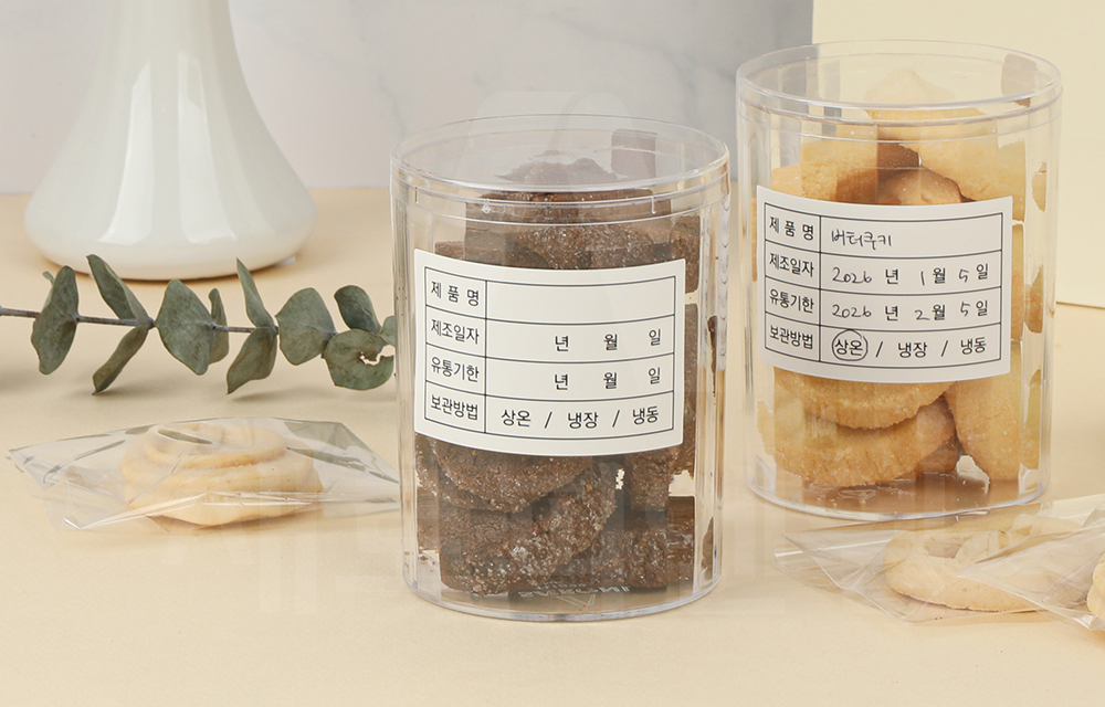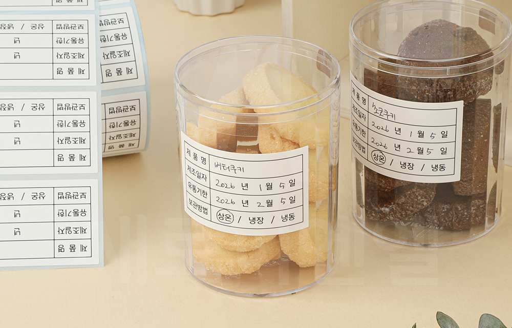 제조일자, 유통기한, 보관방법 등을 간편하게 표기할 수 있는 스티커입니다.