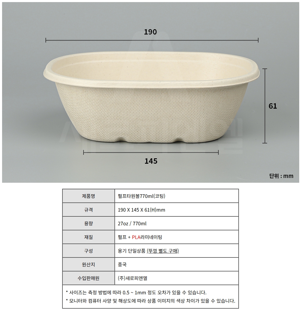 펄프타원볼620ml(코팅) / 190X145X51(h)mm, 50개
