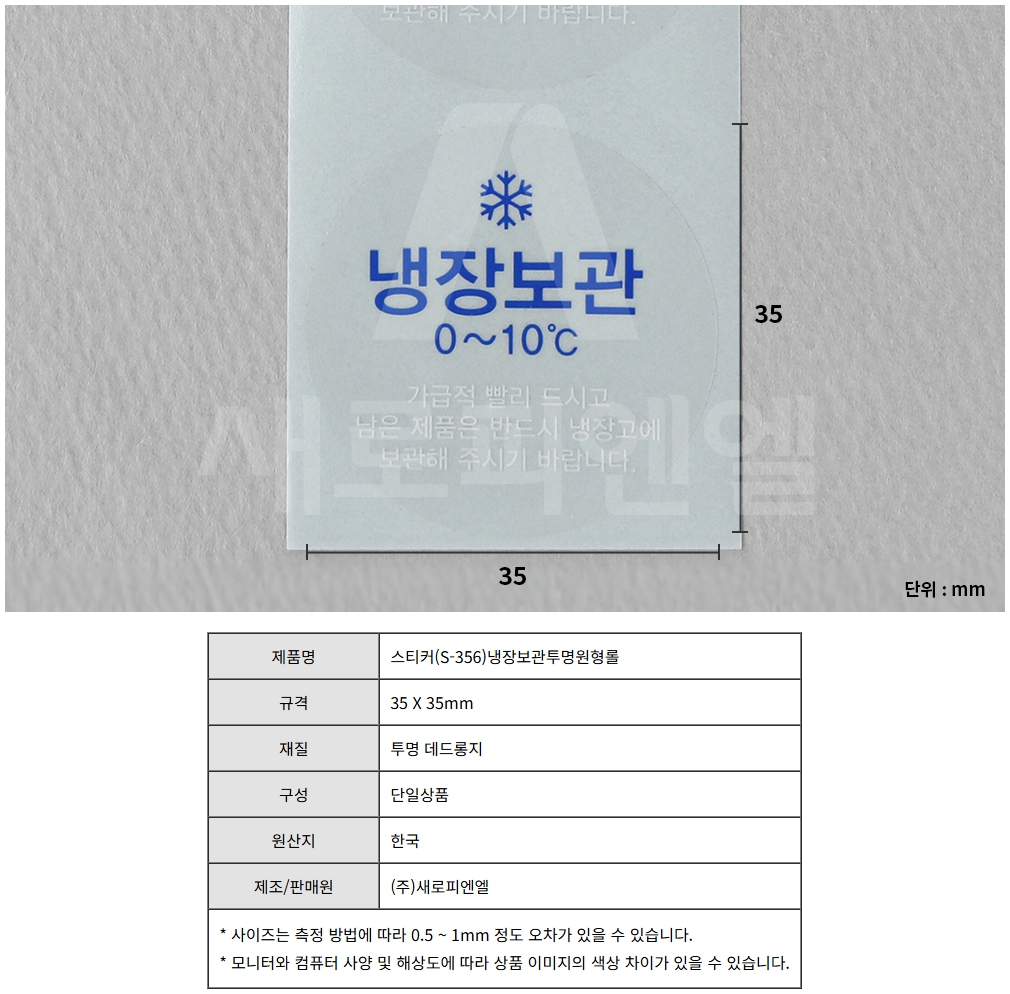 스티커(S-355)냉장보관원형롤 / 500개/롤, 1개