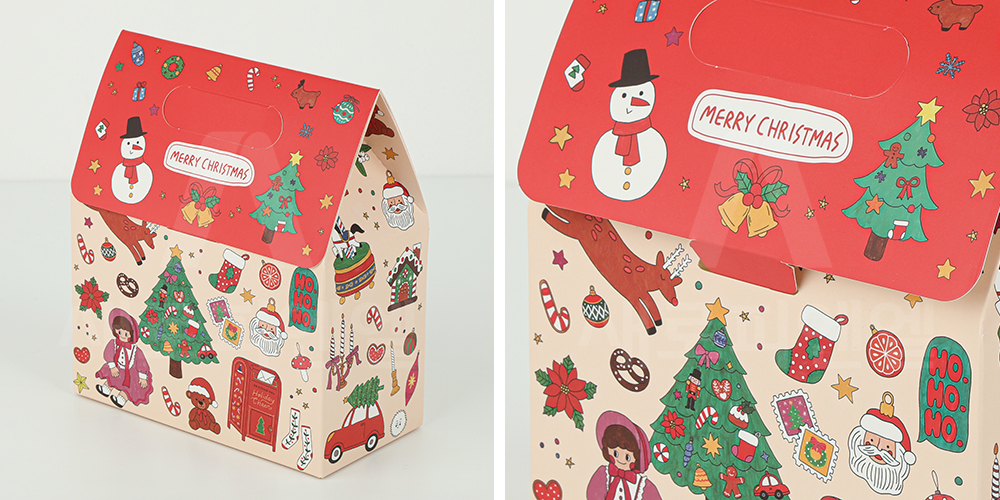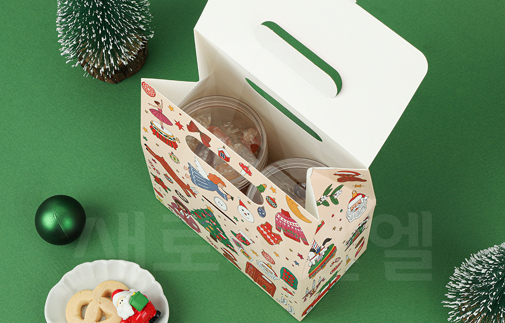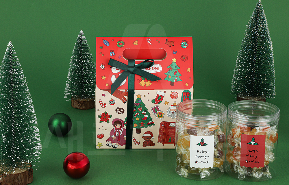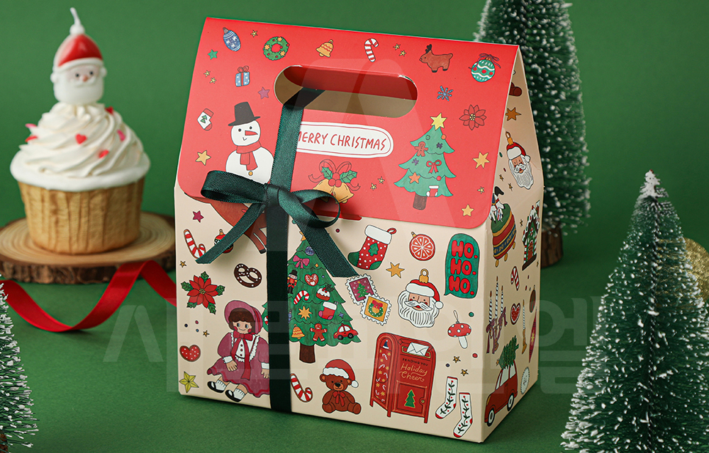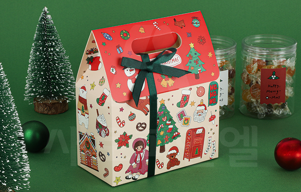 따뜻한 연말 감성을 담은 크리스마스 선물 포장용 손잡이 가방 박스입니다.