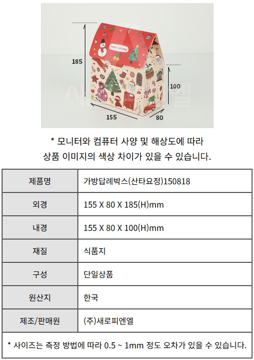 가방답례박스(산타요정)201025 / 200×105×250(H)mm, 25개