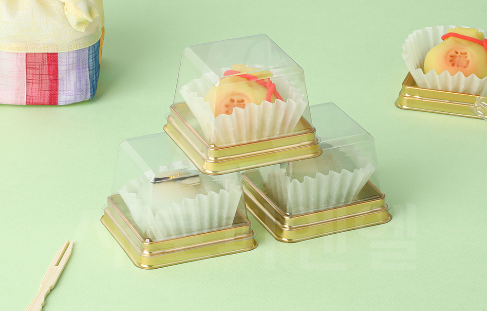 모찌, 곶감, 만주, 양갱, 화과자와 같은 전통 디저트 선물포장에 알맞은 투명 케이스입니다.