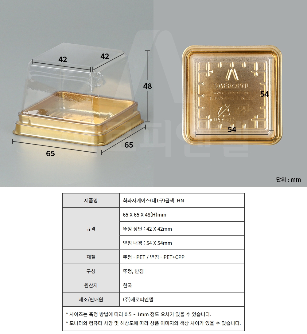 화과자케이스(대1구)투명_HN / 65×65×48(H)mm, 100개