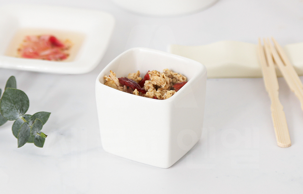 소스, 디저트, 토핑을 소담하게 담아내는 연출에 적합합니다.
