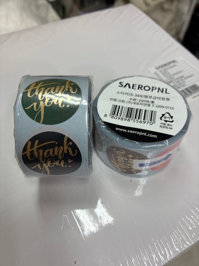 스티커(S-344)땡큐금박원형 / 250개/롤, 1개