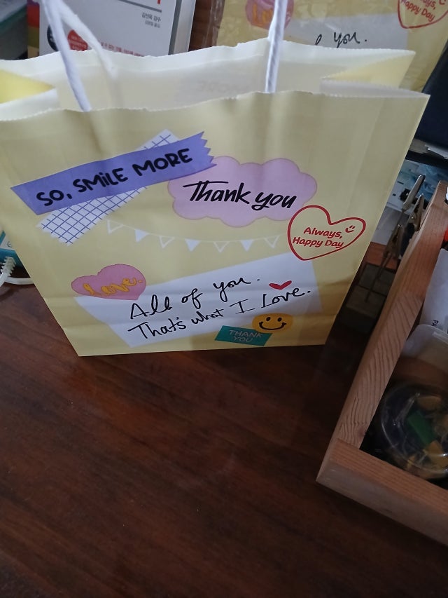 트위스트쇼핑백(땡큐스마일)221227(#2)_VS / (220+120M)×270(H)mm, 박스(100개)