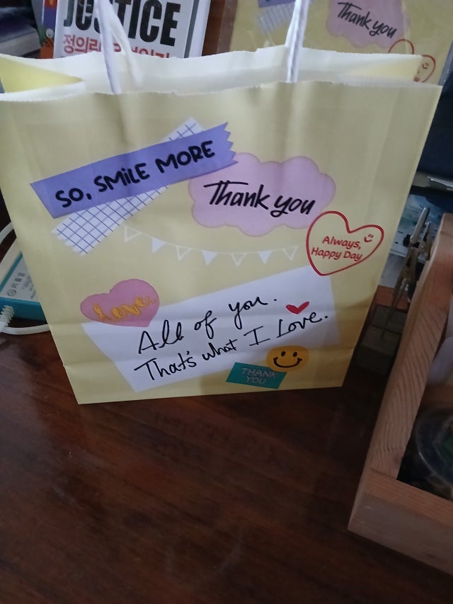 트위스트쇼핑백(땡큐스마일)200923(#1)_VS / (200+90M)×230(H)mm, 박스(100개)